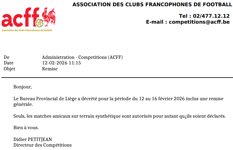 - 13h30: Soumagne Première – Battice B (Amical – sur synthétique)